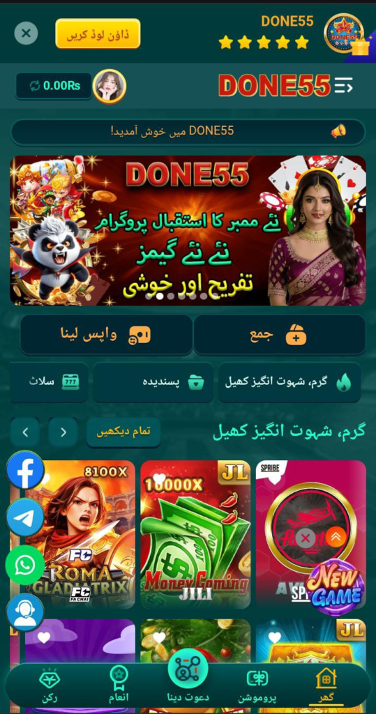 Done55 Game works through a simple and efficient system designed for quick and smooth gameplay. After downloading the app, users register with their mobile number and create a password to set up an account. Once registered, players can deposit funds using secure payment methods like Jazz Cash, Easy Paisa, or bank transfer. After the deposit is confirmed, they can instantly choose any available game and start playing. All games are luck-based, requiring no special skills or strategies. Results appear within seconds, and the wallet balance updates in real time, ensuring a fast, convenient, and seamless gaming experience.