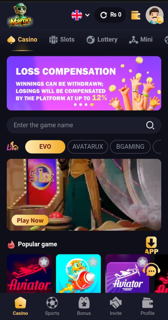 Margo App offers a simple and well-organized layout, enabling users to access games, wallet features, and account settings easily. Beginners and experienced players can navigate without confusion.